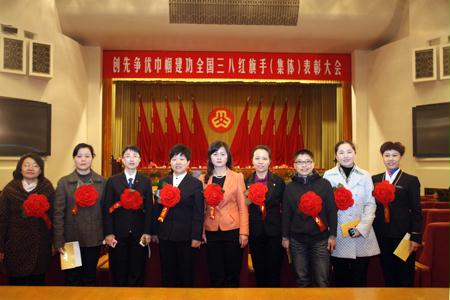 大會隆重表彰了在創(chuàng)先爭優(yōu)活動中涌現(xiàn)出的全國三八紅旗手標(biāo)兵、全國三八紅旗手(集體)及城鄉(xiāng)婦女崗位建功先進(jìn)集體和個人。中國中鐵股份有限公司工會女職工委員會主任劉建媛同志作為中央企業(yè)獲獎代表上臺參加了授獎儀式。