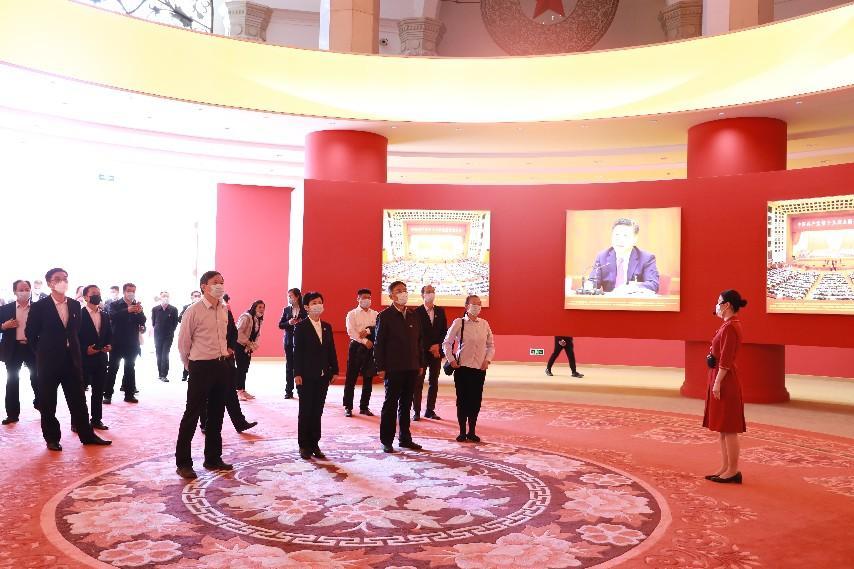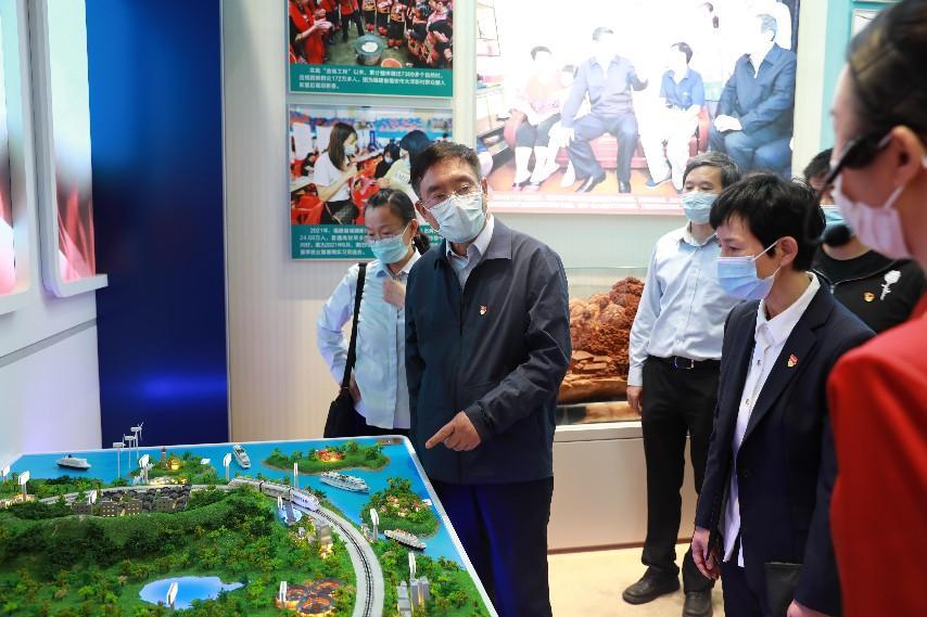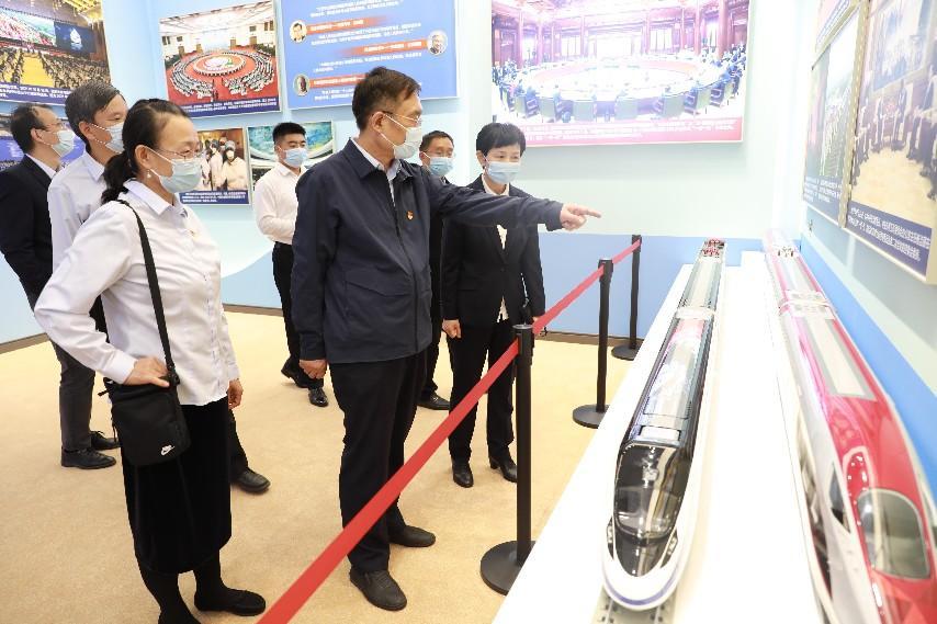 在參觀地方展區(qū)福建、廣東、海南、云南、青海、新疆、西藏等單元時,茍護(hù)生和公司黨員干部不時駐足在FAST天眼、白鶴灘水電站、中老鐵路、三江源、雄安站、藏中聯(lián)網(wǎng)工程等模型、沙盤和圖片前,凝神深思,交流體會?;赝^去,中咨公司聚焦黨中央、國務(wù)院重大關(guān)切,為國家重大戰(zhàn)略、重大規(guī)劃、重大工程的科學(xué)決策提供高質(zhì)量咨詢服務(wù),加強(qiáng)高端智庫建設(shè),與咨詢業(yè)務(wù)形成共建互促新格局。公司參與粵港澳大灣區(qū)、海南自貿(mào)區(qū)區(qū)域發(fā)展戰(zhàn)略的研究制定;總結(jié)推廣福建“三明實踐”發(fā)展經(jīng)驗,助力革命老區(qū)騰飛;服務(wù)新時代黨的治疆方略,為新疆“十四五”高質(zhì)量發(fā)展論證儲備一批重大項目;參與雄安新區(qū)若干規(guī)劃咨詢服務(wù),承擔(dān)雄安站咨詢論證以及雄安市民服務(wù)中心工程監(jiān)理服務(wù);踐行“綠水青山就是金山銀山”理念,編制我國第一部國家公園規(guī)劃《三江源國家公園總體規(guī)劃》;評估論證南水北調(diào)、天眼、藏中聯(lián)網(wǎng)工程、白鶴灘水電站、“華龍一號”等一批重大工程,當(dāng)好國家投資建設(shè)的科學(xué)智囊;建言獻(xiàn)策,推動中老鐵路從構(gòu)想變成現(xiàn)實,參與中老鐵路評估論證及監(jiān)理服務(wù)……中咨人努力拼搏、銳意進(jìn)取的奮斗場景歷歷在目。大家對中咨公司以習(xí)近平新時代中國特色社會主義思想為遵循,以服務(wù)國家戰(zhàn)略為己任,將黨中央、國務(wù)院決策部署不折不扣落實到咨詢服務(wù)工作中,在“非凡十年”為黨和國家事業(yè)發(fā)展貢獻(xiàn)智慧和力量感到振奮和鼓舞。