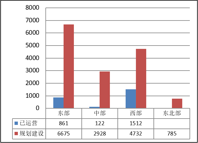 由上圖可知,目前我國東、中、西及東北部已運營市域(郊)鐵路中,西部占比最高,其次是東部,再次是中部,東北部暫無運營的市域(郊)鐵路,與各區(qū)域既有鐵路規(guī)模和路網(wǎng)密度關(guān)系較大。擬規(guī)劃建設(shè)的市域(郊)鐵路中,東部地區(qū)因為經(jīng)濟發(fā)達,大都市圈發(fā)展進程較快,為后續(xù)市域(郊)鐵路建設(shè)提供了較強的動力,因此東部占比最高,其次是西部,再次是中部,東北部最低。