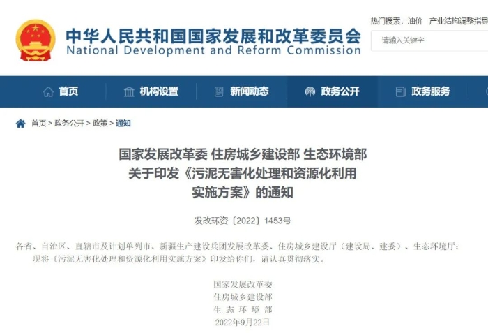 污泥是污水處理產(chǎn)生的副產(chǎn)物,近年來,我國城鎮(zhèn)生活污水收集處理取得顯著成效,但仍然存在“重水輕泥”問題,污泥處理成為環(huán)境治理難題之一。近日,國家發(fā)展改革委、住房城鄉(xiāng)建設(shè)部、生態(tài)環(huán)境部聯(lián)合印發(fā)《污泥無害化處理和資源化利用實(shí)施方案》(發(fā)改環(huán)資〔2022〕1453號(hào),以下簡稱《實(shí)施方案》),對(duì)加快推進(jìn)污泥無害化處理和資源化利用進(jìn)行全面工作部署,明確污泥處理方向和路徑,對(duì)深入打好污染防治攻堅(jiān)戰(zhàn),推動(dòng)減污降碳協(xié)同增效,促進(jìn)生態(tài)環(huán)境質(zhì)量持續(xù)改善具有重要意義。