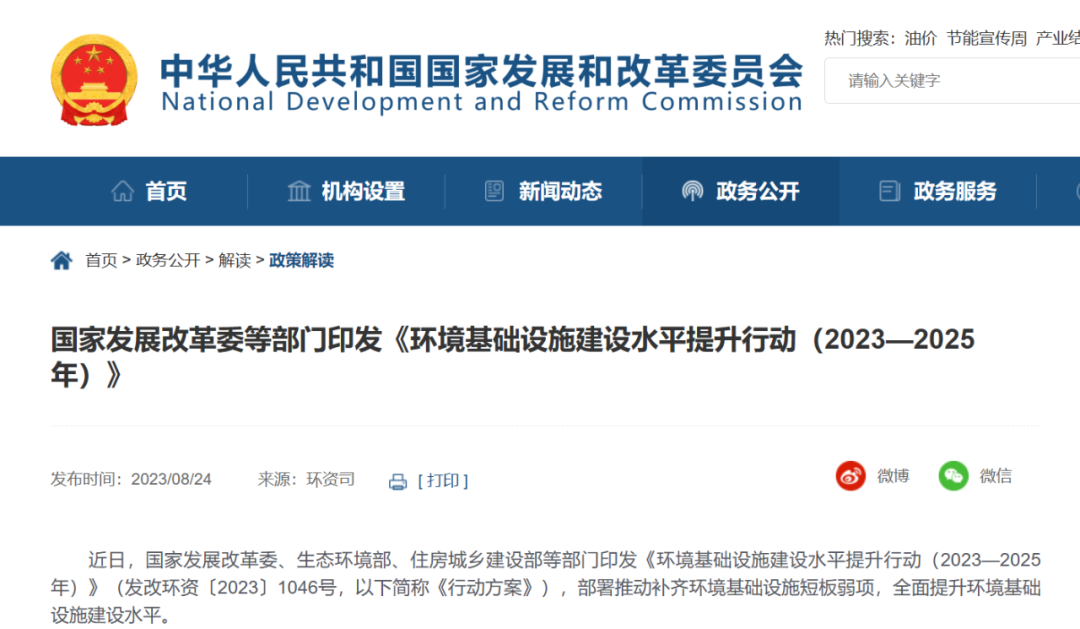 ——《環(huán)境基礎(chǔ)設(shè)施建設(shè)水平提升行動(dòng)(2023—2025年)》解讀