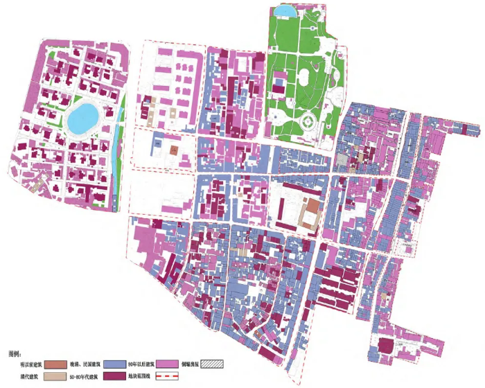 圖1 漳州古城現(xiàn)狀建筑年代分析