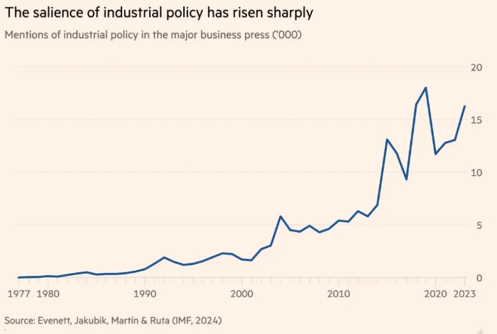 產(chǎn)業(yè)政策再次成為政府干預(yù)的強大動力。世界許多地方都是如此。但最引人注目的轉(zhuǎn)變發(fā)生在美國。羅納德·里根宣稱: “英語中最可怕的九個字是:我是政府派來的,我來幫忙?!比缃?,拜登政府正在熱情地“提供幫助”。唐納德·特朗普也是一個干涉主義者,不同之處在于,他的幫助方式是提高關(guān)稅。鑒于美國歷史上作為開放世界經(jīng)濟的倡導(dǎo)者的角色,這種轉(zhuǎn)變意義重大。